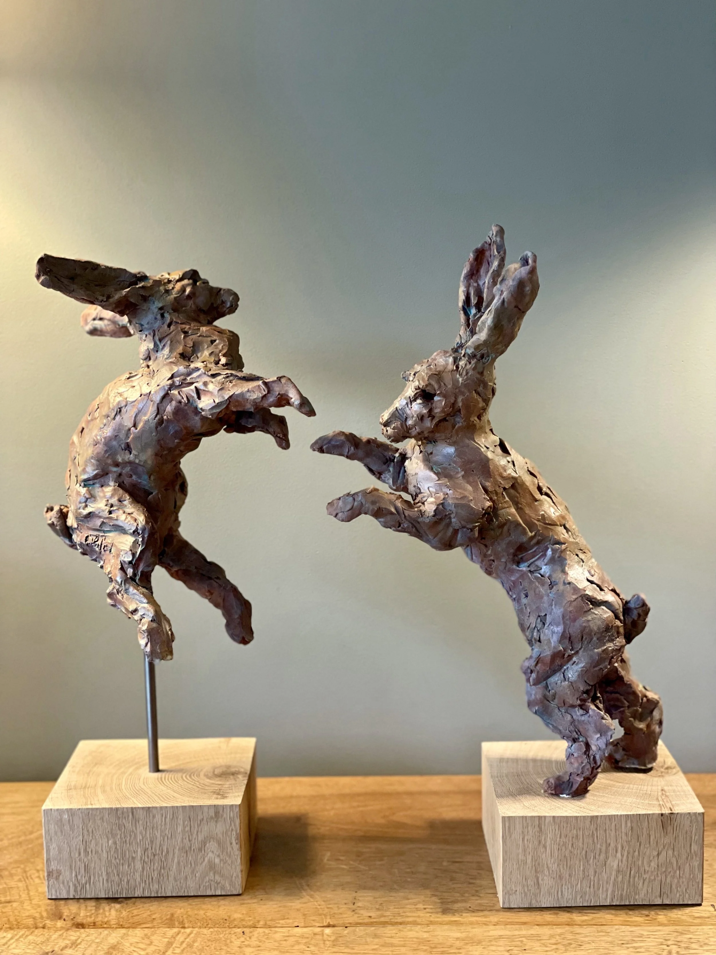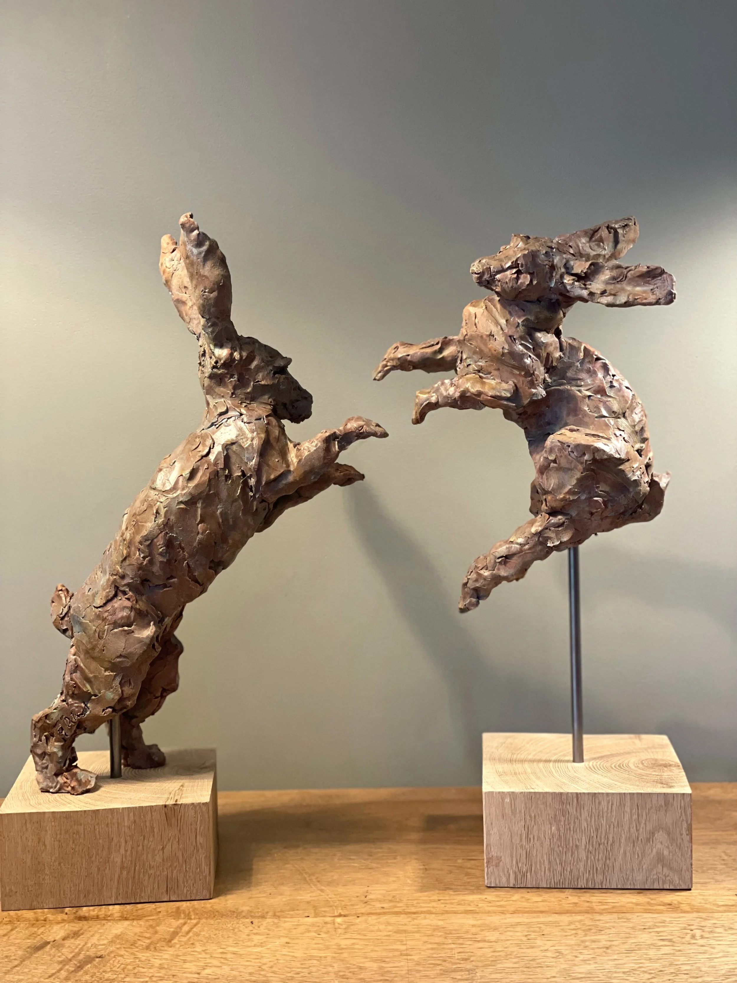 Combat de lièvres - terre cuite