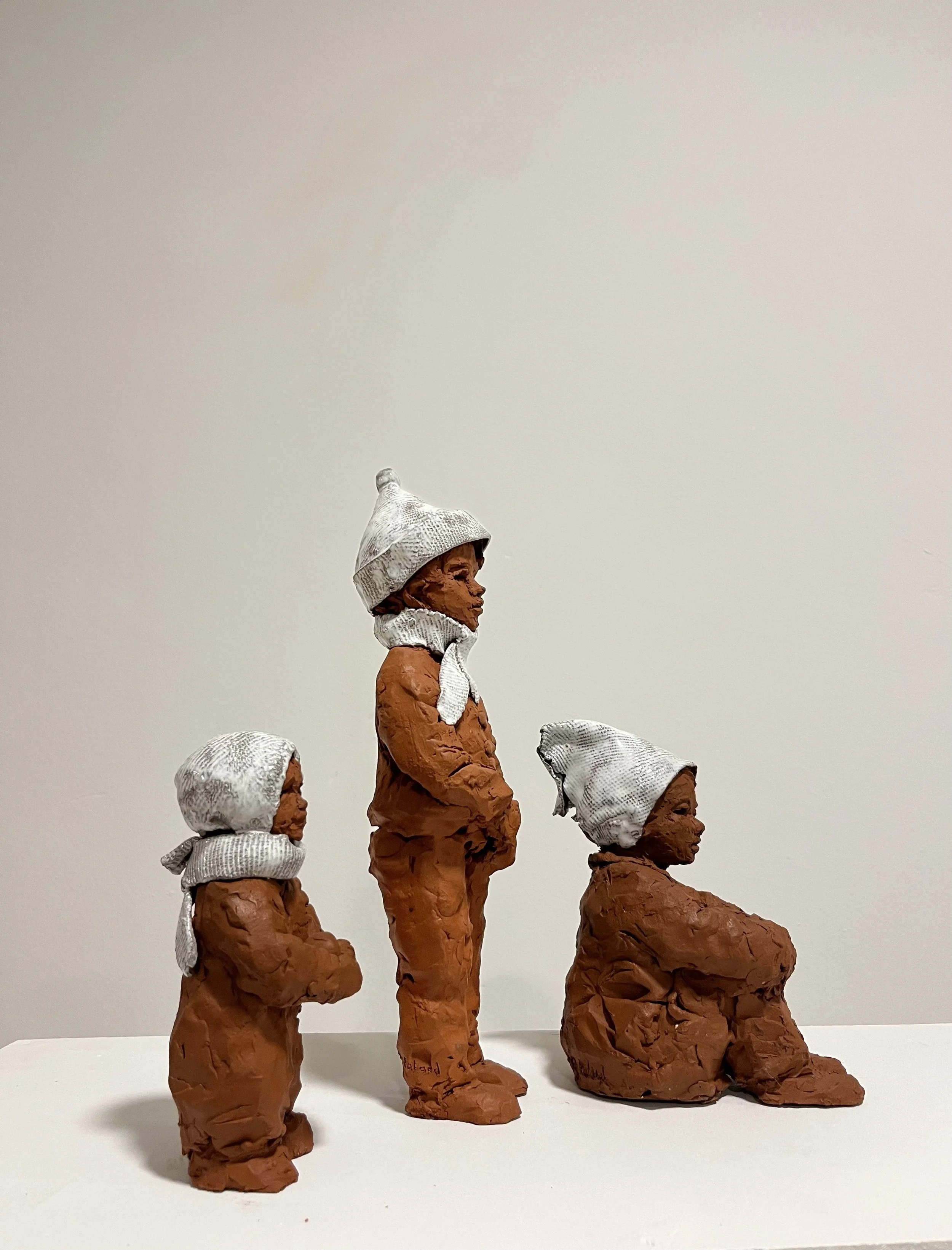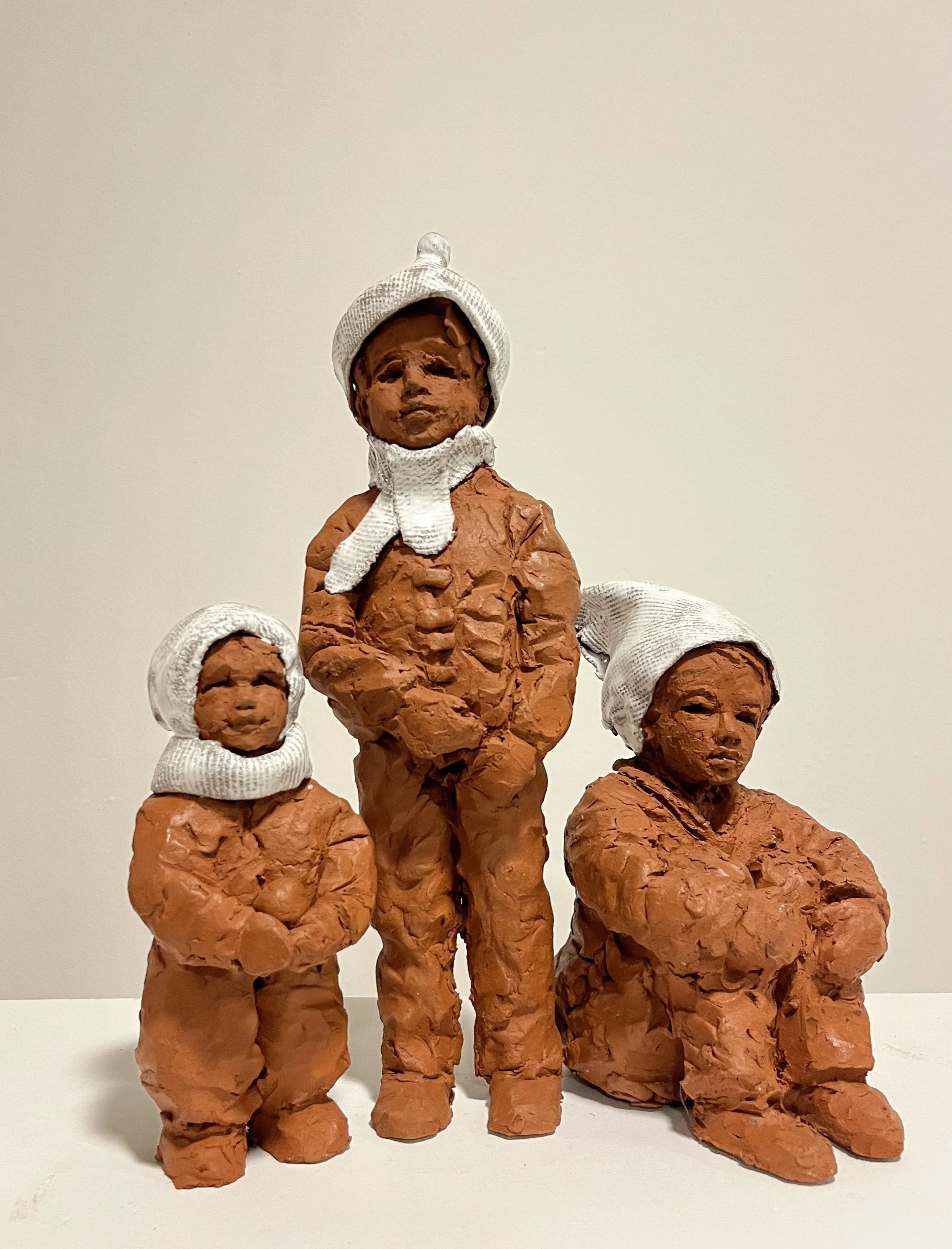 Les enfants à la neige - terre cuite et émail