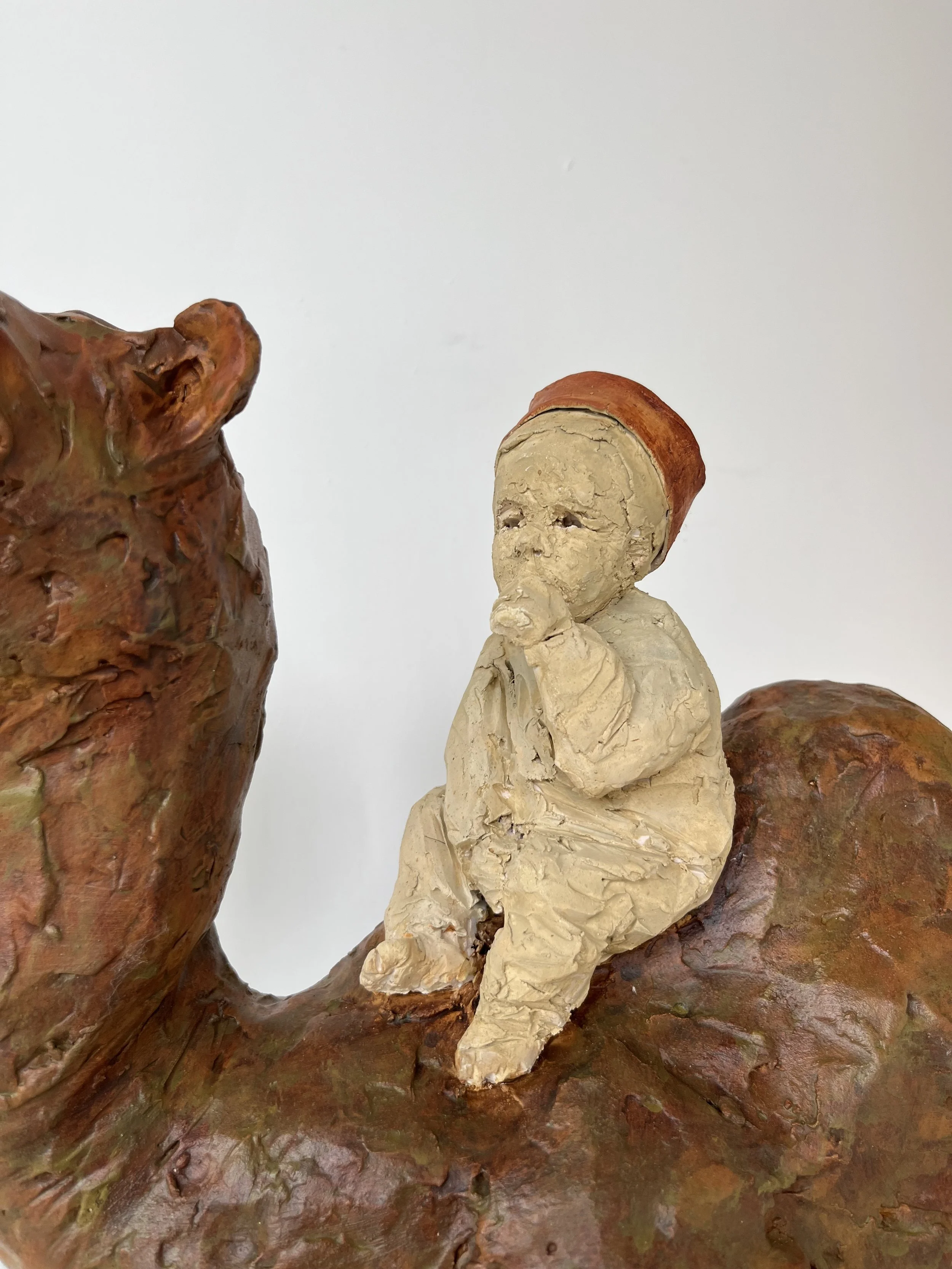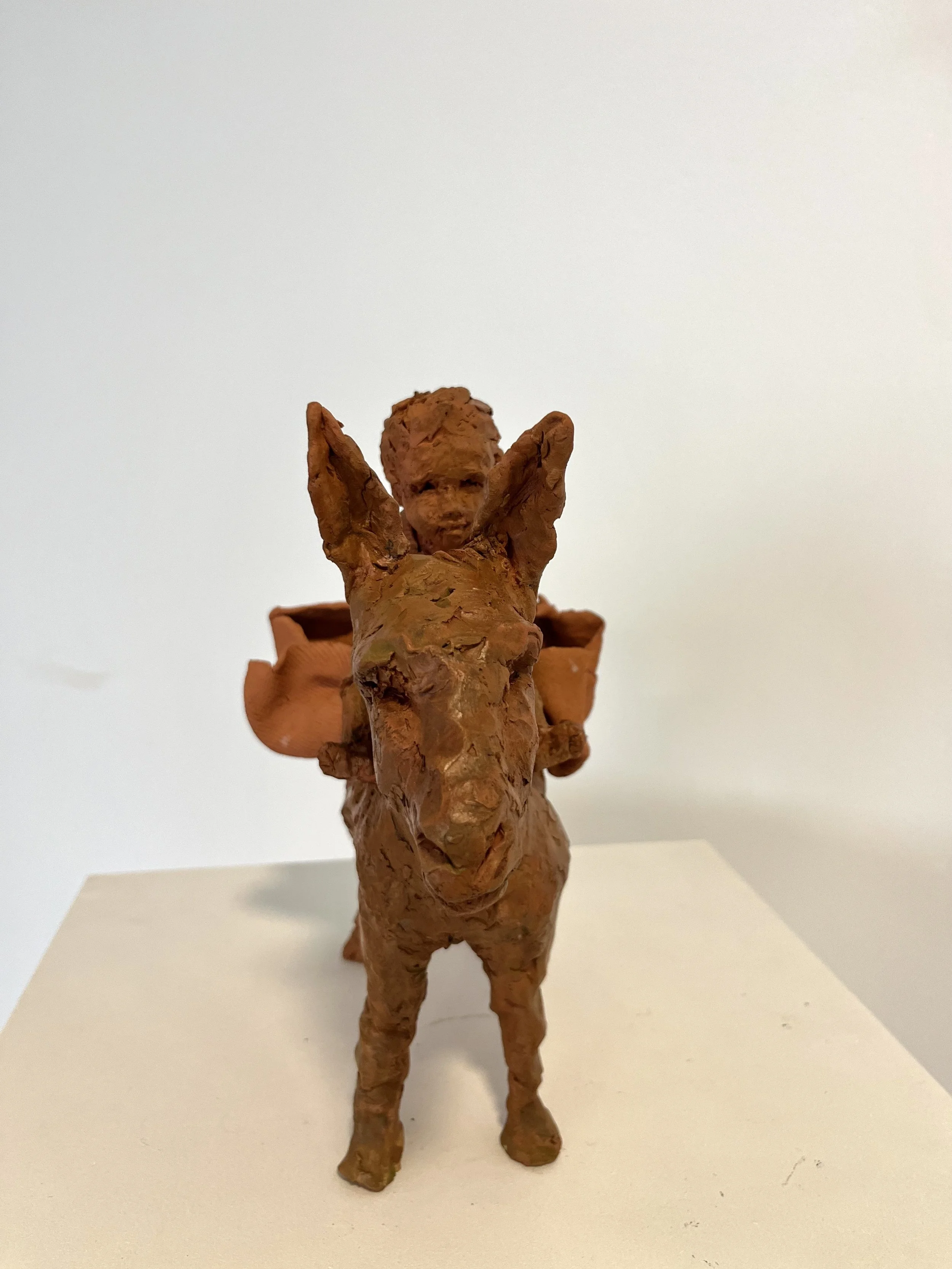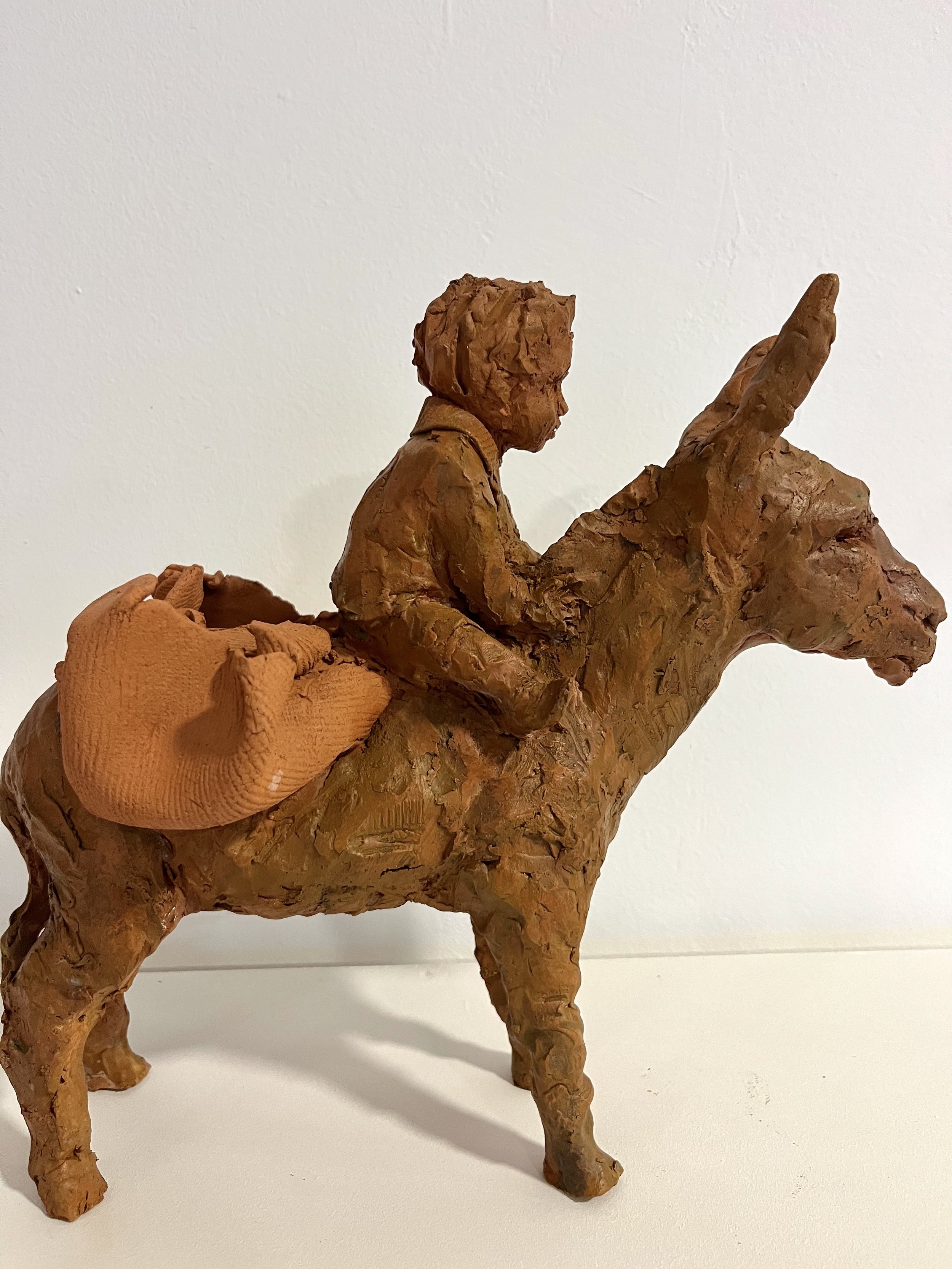 Petit garçon sur son âne - terre cuite