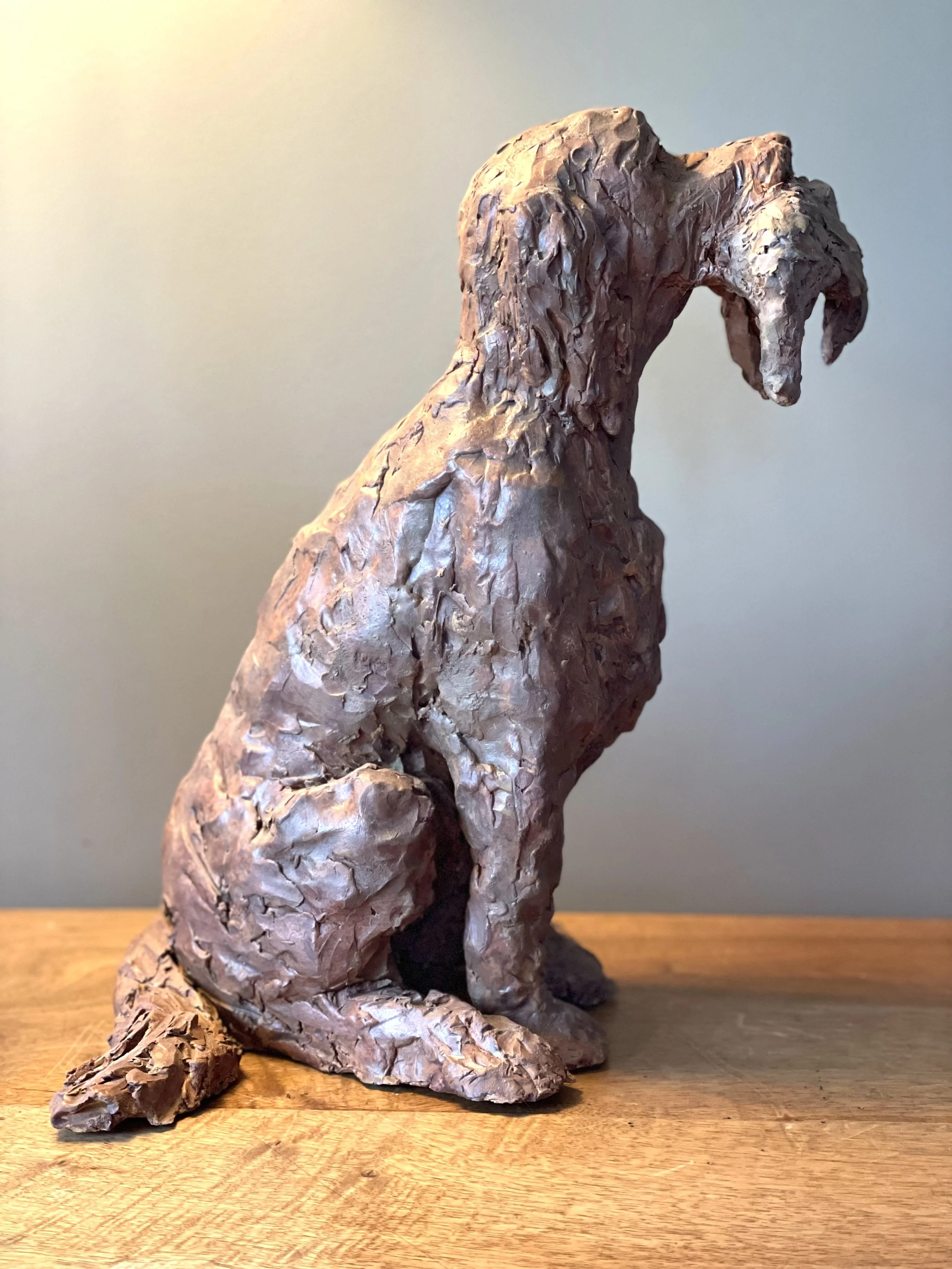 Chien au rapport - terre cuite